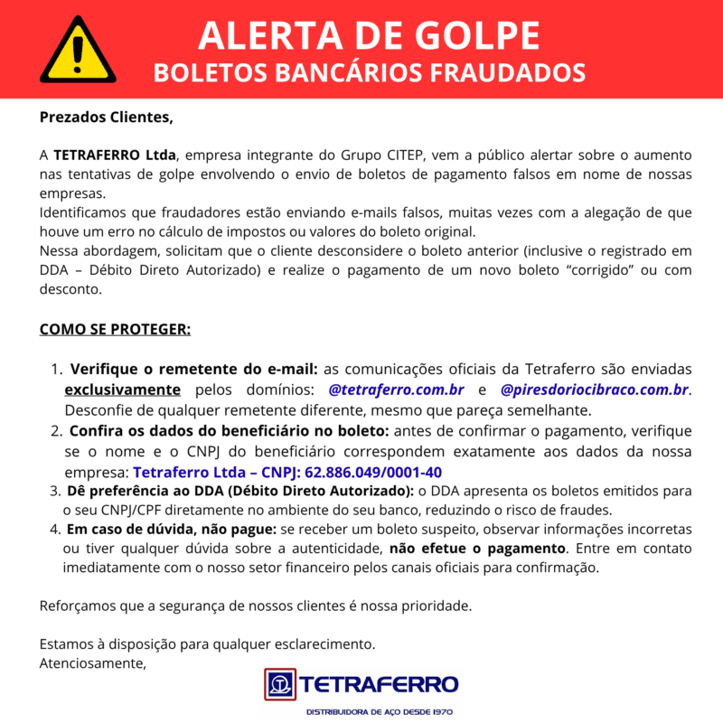 Política e Termos de Uso | © Copyght Tetraferro Ltda. 2024